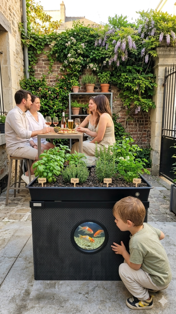 Et si votre bassin devenait aussi productif ? NAPS transforme un simple aquarium d’extérieur en un petit écosystème vivant, esthétique et utile.